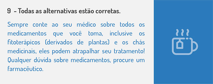 Algumas substâncias podem comprometer seu tratamento. Se você sabe quais são, marque a alternativa correta: